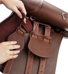 Replacement quick change leather girth straps for Bates Saddles with a webbing loop at the top to attach to the girth rings under the saddle flap.