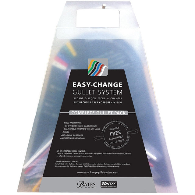 - The EASY-CHANGE® Complete Gullet Kit contains an EASY-CHANGE® Gullet Gauge, five Gullet sizes (excluding the medium black gullet that is fitted as standard in your saddle) fixings, EASY-CHANGE® Locating Tool and instruction booklet.