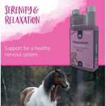 Magnesium and L-Tryptophan feed supplement for horses to support a healthy nervous system.