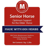 • Senior Horse is a dry supplement containing herbs such as hawthorn, meadowsweet and burdock and is ideal to give to the veteran horse or pony.