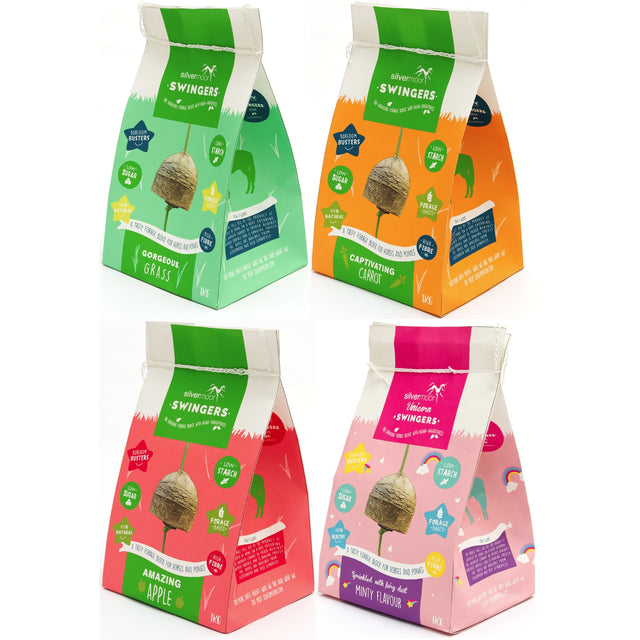 Silvermoor Swingers are low in sugar and low in starch. They provide a healthy addition to be used to compliment the horses’ diet and can help manage weight.