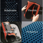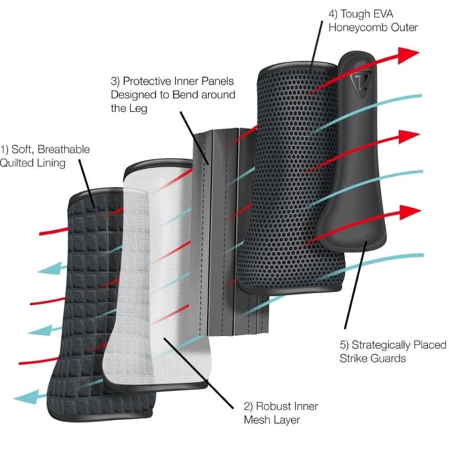 - Breathable Multi-Layer composition, with robust mesh inner layer, protective inner panels, tough EVA honeycomb outer, and strategically placed strike guards