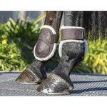Classical style with cutting edge protection. These leather fetlock boots are made from top-quality soft leather that moulds beautifully to the leg. The stitching detail defines the key anatomic sections that flex as the horse jumps while the upper and lower sections articulate with movement. With Soft Fleece and EVA lining these boots give style, performance and function. Double lock velcro straps ensure the perfect fit and adjustability.