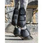 Classical style with cutting edge protection. These leather tendon boots are made from top-quality soft leather that moulds beautifully to the leg. The stitching detail defines the key anatomic sections whilst the soft contoured top is cut back to allow no restriction on the tendon when jumping. Designed with low friction EVA lining these boots give style, performance and function. Double lock velcro straps ensure the perfect fit and adjustability.