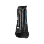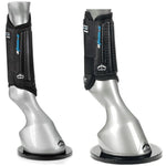 • Double ventilation: heat released from the horse’s legs passes through the microperforated neoprene layer and is then distributed in the 3D mesh ducted fabric. Air is tunnelled through specialist inlets as the horse moves which directs accumulated body heat outwards through the technical ducted fabric