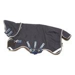 Surefit Neck design with V-Front closure to give freedom of movement to graze. Leg arches, reflective strips, wipe clean tail cord, liner loops, three secure cross surcingles and shine enhancing polyester lining. Thermobonded fibrefill for superior and long lasting heat retention. Comes with 100g outer, detachable 100g hood and a removable 300g liner for versatility to suit all seasons.