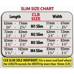 Measure the hoof length carefully just AFTER A FRESH TRIM. Do NOT include heel bulbs. Stay within the hoof size range as room growth has already been allowed for between regular trims. Please see measuring image and note that when printing the chart ensure the sizing equates to a standard ruler.