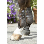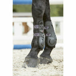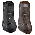 A range of jumping boots with enhanced vented protection. Lightweight shock resistant shell is anatomically moulded to support the fetlock and tendon.