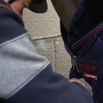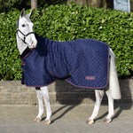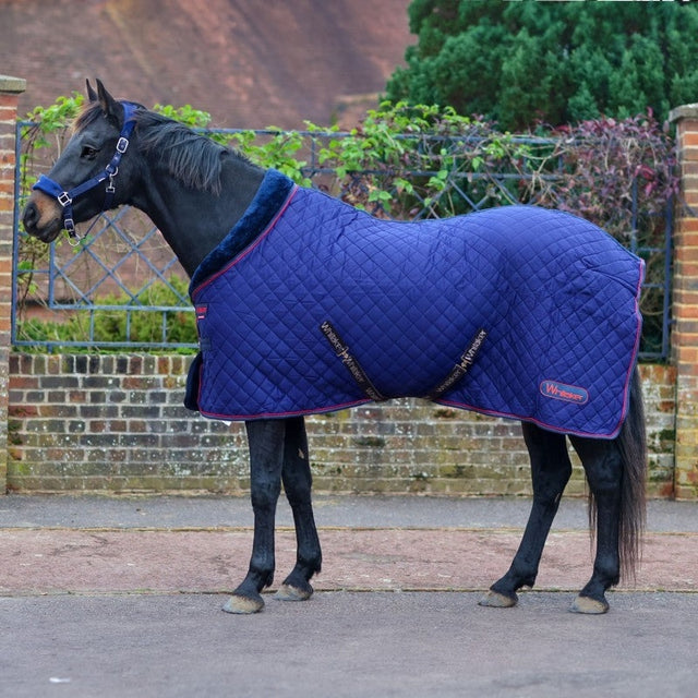 Wrap your horse in luxury with the Whitaker Rastrick V2 - a plush faux fur- lined stable rug blending comfort, style, and durability in a striking navy, red, and white design.