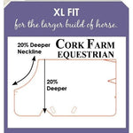 These rugs are cut 20% deeper and 20% larger around the neck area to allow for horses with broader necks and chests.