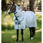 Made of a soft, close-weave mesh, the lightweight and durable fabric offers 65% UV protection to help shield from sunburn or bleaching. Classic straight front, front leg arches, tail string, and two adjustable surcingles offer freedom of movement and ensure a secure fit. Finished with a silky lining on the mane, shoulder, and oversize tail flap to enhance shine and reduce friction.