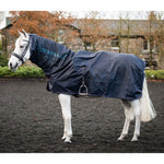 Lightweight waterproof rug protects your horse and tack from the elements. It has an integrated neck cover, stirrup slits and belly strap, ideal for use on rainy show days. Comes with a handy storage bag.