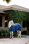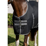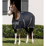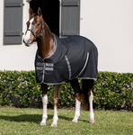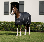 Available in 5'0'' - 7'3'' in Navy with White, Black with Grey, Navy with Thunderstorm Grey & Silver or Navy with Thunderstorm Grey & SilverA classic cut neckline, straight front closure, adjustable cross surcingle’s and fillet string contribute to your horse’s wearing pleasure, and the easy-care aspects of this rug make your life easier as a busy horse owner.