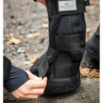 Designed with a contoured fit and four adjustable Velcro straps to mould around all leg shapes. A perfect blend of style and function to keep your horse looking and feeling their best before the ring.