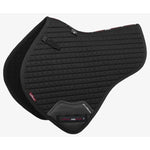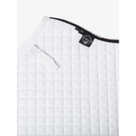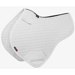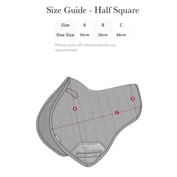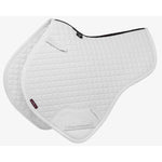 The LeMieux plain cotton Half Square is designed for the competitive rider offering modern style & performance. The more streamline half cut profile is cooler than a full square and less bulky, making it one of the least restrictive jumping pads. With its high wither, elasticated D-Ring tabs and signature teardrop girth protection area this is a very sporting looking pad.