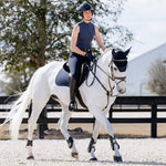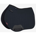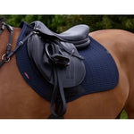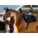 The sporty matte-textured faux leather girth protection area is complemented by an embossed logo. Our signature LeMieux hidden girth loop channels mean you can precisely place your girth.