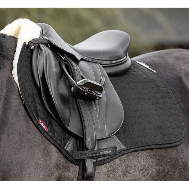 This pad is half-lined with our Australian Merino+ blend (70% Merino 30% acrylic), which, combined with a flexible backing, washes better and dries faster for ultimate comfort and convenience. The dense and soft dynamic wool structure consistently shapes to your horse's back offering breathable support.
