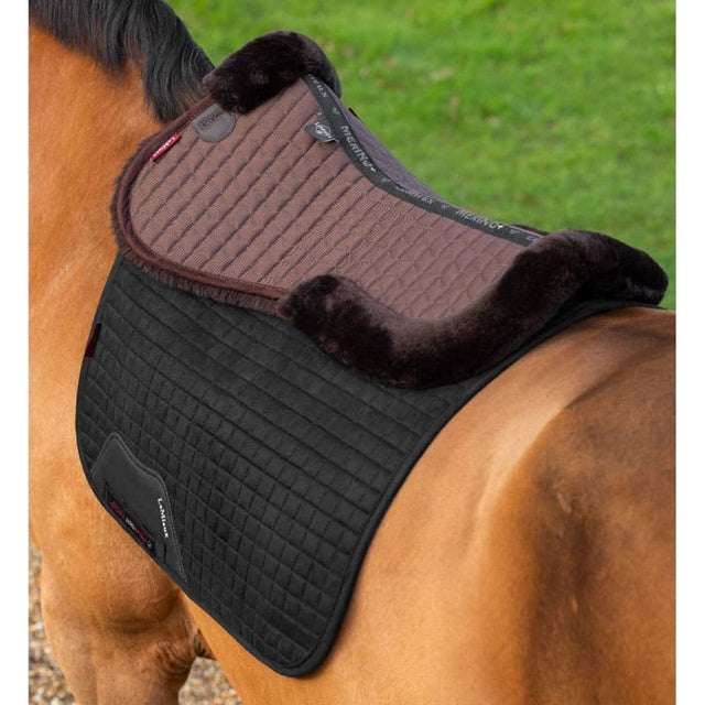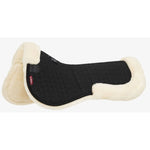 This half pad is lined with our Australian Merino+ blend (70% Merino 30% acrylic), which, combined with a flexible backing, washes better and dries faster for ultimate comfort and convenience. The dense and soft dynamic wool structure consistently shapes to your horse's back offering breathable support.