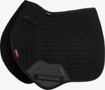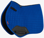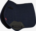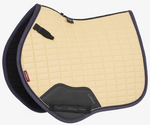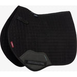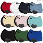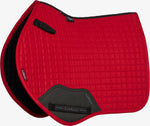 An iconic jumping pad with its high wither cut, elasticated D-ring tabs and swept back profile, our suede saddle pads offer practicality and comfort under the saddle.