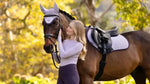 The luxurious yet easy-care suede-effect upper is perfect for everyday occasions. It is finished with subtle LeMieux-branded spine tape, while soft, contoured, friction-free binding ensures the pad always lies flat. Our signature breathable natural bamboo blend lining absorbs and controls sweat under the saddle and is naturally anti-static, antimicrobial, and quick-drying. It's also beautifully comfortable and secure, minimising friction even on sensitive-skinned horses.