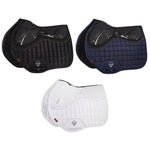 The EuroJump design marks an exciting collaboration with Scott Brash, the world’s no 1 showjumper. These pads have been developed to precisely fit the cut of modern jumping saddles. High Cut wither and swept up at the back to avoid catching the riders leg. New super soft Bamboo linings absorb & control sweat under the saddle and are beautifully comfortable and secure. Wider girth keepers incorporate three inner locking loops to offer more girthing options.