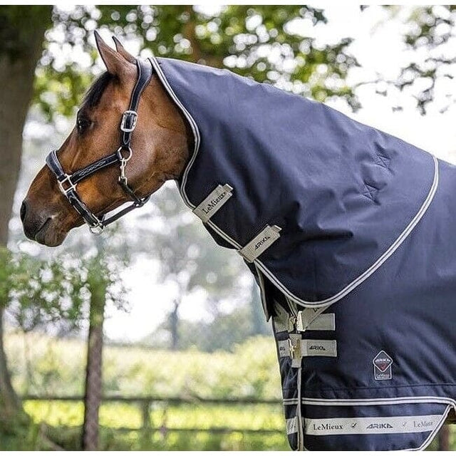 The Arkia Featherweight Turnout Neck Cover is compatible with all Arkia Storm-Tek Turnout Rugs from LeMieux. Attached via 4 Velcro tabs which fit into corresponding D-rings located around the rug's neckline. Cut to provide optimum coverage and freedom when grazing.