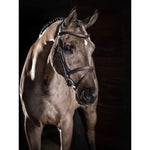 This bridle features a lightly padded anatomical noseband and browband that offers protection and even pressure distribution.
