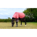 Add a pop of colour to the field with the Arika Ripstop Turnout Rug. Developed with the same technical features as our best-selling Arika Turnout range, this lightweight yet durable rug is ideal for transitional seasons, protecting your horse and keeping them dry and comfortable in wet weather. The waterproof yet breathable 600 Denier rip stop outer is cut with a seamless spine to eliminate leaks. It boasts a 10,000mm waterproof and 3000mvp breathability rating for comfort in the field. An antibacterial, anti-static shoulder lining helps balance the rug while enhancing shine. Our design registered two-part skirt works to break tension around the front hemline for field-friendly freedom and flexibility. The patented 45° angled T-bar front closure plus the antibacterial, anti-static shoulder lining ease pressure across the chest and shoulder, reducing rubbing risk and allowing free movement for playtime and grazing. You can choose from the different fill weight options to suit your horse's needs. Rest assured the thermobonded fill won't bunch up or slip down, even when wet. Practical technical features make this rug your go-to turnout option. Reflective details make your horse easier to spot and catch in the dark. The PVC-coated fillet strap is easy to clean. Crossed surcingles keep things secure beneath the belly, and elasticated leg straps offer added security. The detachable neck gives you coverage options, while Arika liner system attachments at the neck and rear mean you can add liners to create versatile temperature control across the seasons. Info & Care