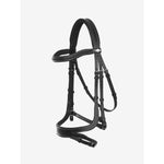 This bridle features a lightly padded anatomical noseband and browband that offers protection and even pressure distribution. The lower noseband sits clear of the bit, with a similar action to a drop.