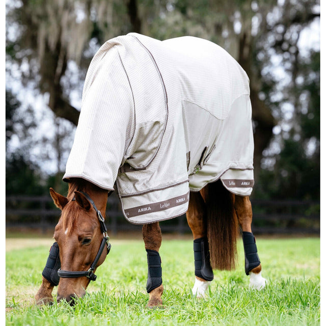 The breathable micro-mesh lower section defends against flies and insects and promotes airflow.