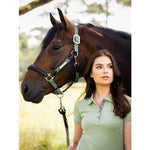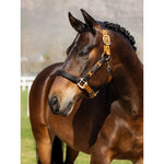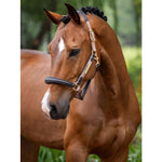 This luxury leather headcollar is beautifully crafted with soft leather, stong nylon and solid metal fittings for a high quality stylish finish.
