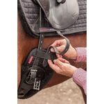 Fitting Instructions: Correct fitting of the two centre hook & loop straps is essential to prevent any slipping of the cover on the girth. Pull first hook & loop strap over girth and tuck end underneath. Then pull top hook & loop strap firmly the other way and attach, thus creating a 'pinch point' for maximum security of the cover. Ensure when fitting your cover to your girth the tabs are pointing towards the back.