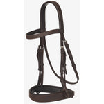 This bridle comes matched with premium American oiled leather reins with a traditional matte finish and laced grip. The reins have a central buckle and discreet billet bit attachments.