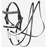 A snazzy crystal padded browband gives the LeMieux look, while a soft white leather and black patent leather padded noseband lends an authentic dressage appearance.
