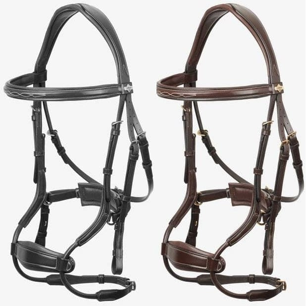 Expertly crafted bridlework in European leather with stitching details and rolled features, this groundbreaking bridle is designed to minimise pressure on the delicate areas of your horse's face.