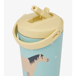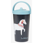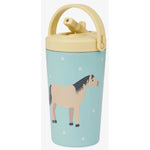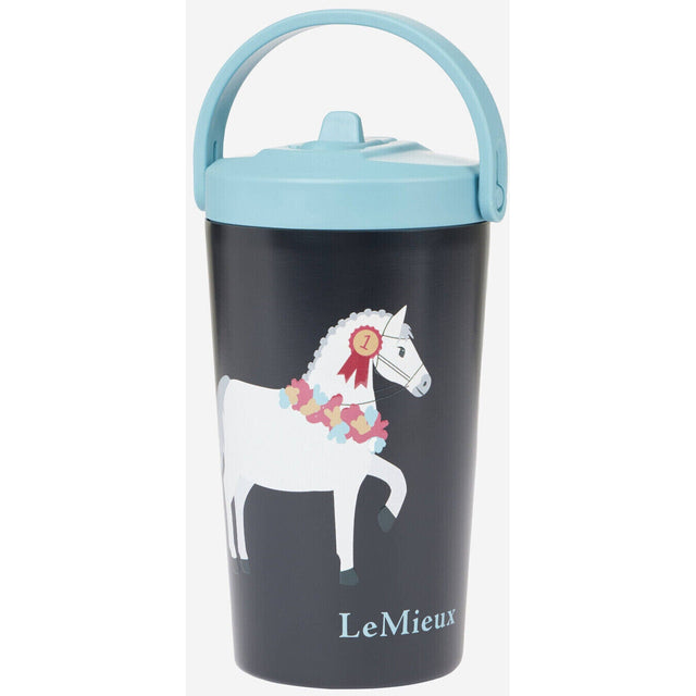 This adorable travel cup for kids offers 480ml leak-proof hydration on the go, perfect for days out, riding lessons and picnics. Vacuum-insulated stainless steel maintains the temperature of drinks. A garlanded, rosette-wearing show pony print contrasts with the navy bottle, while a blue screw-top lid with a BPA-free straw flip top makes it easy to drink from and spill-free. A portable handle is ideal for carrying by little hands.