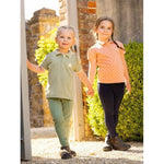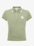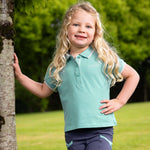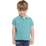 Made from soft pique jersey, this beautifully soft and comfortable Mini Polo Shirt comes in a classic fit with just a hint of stretch for long-lasting comfort. The front button placket, ribbed collar, puffed sleeves and funky star buttons give it a fun finish. Our sherbet colourway comes with a new mini horse all-over print with puff sleeves and a cute star button. Our Fern colourway comes with star buttons, while Ecru features thyme tipping details on the cuffs and collar. Be on trend by matching your LeMieux pads, boots, bandages and fly hoods for the complete look!