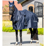 The generous silhouette, single surcingle and stirrup slits mean it fits neatly over tack, protecting both your leatherwork and your horse.