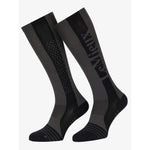 The padded foot and arch offers all the support you need, while a diamond print silicone grip on the inside of the calf keeps these performance-enhancing socks in place, whether worn over or under breeches and riding boots.