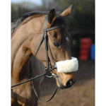 This super soft high-density faux lambswool noseband cover is a stylish and practical addition to your bridle. It reduces pressure and protects the horse's nose from rubbing, especially when wearing a tight noseband.