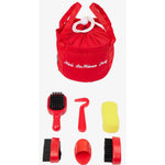 Brushes, curry comb, sponge, mane comb and hoof pick all in a neat zipped grooming bag to take wherever you go.