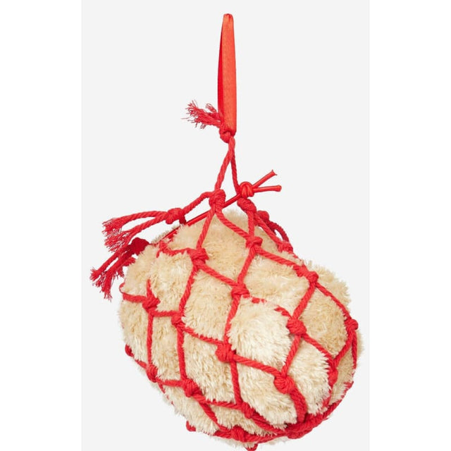 There's an elastic opening for filling the haynet with the fluffy hay bale, and a short hanging loop for safe feeding.