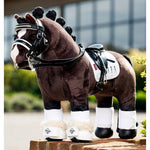 Boot up for perfect dressage with your toy pony. These fleece-edged white over reach boots will protect your toy pony's hooves while they prance and dance.