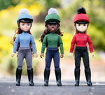 One of three interactive, fully articulated, high-quality equestrian dolls with individual personalities and matching outfits in LeMieux core colours, luscious, real-feel, brushable long hair and natural eyelashes. They come wearing removable replica LeMieux riding wear with a removable riding helmet and boots.