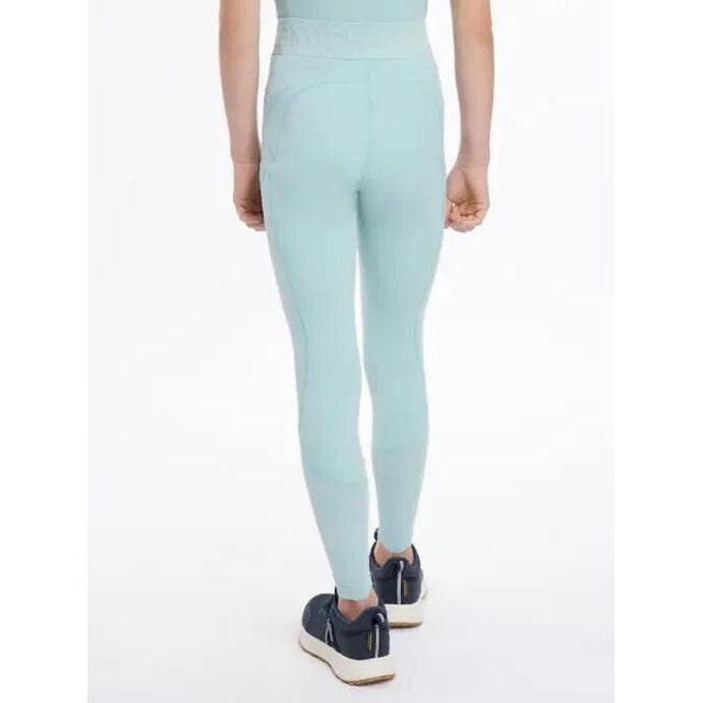 A subtle silicone knee grip offers stability in the saddle, and the sporty LeMieux branded elastic waist is a stylish finishing touch, especially for young riders.