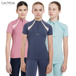 A UV50+ quarter zip base layer for active young riders. Designed to keep them cool and comfortable, this base layer has ventilating mesh panels coupled with sweat-wicking thermal fabric for optimal temperature control.
