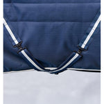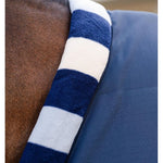 A luxuriously padded fleece collar in stylish Newmarket stripe prevents drafts in colder weather and sits comfortably around the neck. V-Front Closure, cross surcingles, and tail string keep stable rug securely in place while giving your horse the freedom of movement they want in a stable rug to move and lay down comfortably.