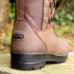 Brilliant for slipping on for dog walks or yard work, this boot has a full waterproof membrane and non-slip sole for practicality, and a stylish scalloped lace up design end tonal laces that makes it smart enough to wear out and about! Versatile mid-calf height is suitable for all year use and can be comfortably worn with any legwear, fully waterproof up to 16cm. Waxed leather foot is naturally stain and water resistant, the grained leather calf is flexible and comfortable. Top velcro strap keeps laces in place and is finished with a brass branded badge. Slimline rubber sole for grip in all terrains and a rear spur stud to aid in removal of boot.