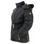 The stunning Cornhill Quilted Coat is engineered with quilted luxury faux duck down panels ensure optimum insulation, by trapping warm air to create a snug feeling. The detachable premium faux fur around the hood and faux fur on the collar to not only look stylish but keeps you toasty in the cold weather. This gorgeous coat features detachable premium faux fur around the hood and faux fur on the collar to keep you toasty and a flattering belt to secure the coat and creates a tailored shape and silhouette. The rear zipped vents allow for this coat to be used easily when riding, so you can look on-trend and be comfortable in and out the saddle. Exquisite gold detailing finishes off this stylish item, including a two-way front zip, press studs, zipped pockets and subtle Coldstream badge to the arm. As with any signature Coldstream piece, you are guaranteed supreme style and performance with this deluxe garment.
