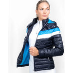 The lightweight Southdean Quilted Jacket is engineered from premium faux duck down filling that traps warm air, offering an insulated piece for those cooler days. Meticulously designed with chevron quilting and contrast panelling to offer a streamlined and flattering silhouette, this windproof garment also features a sleek padded hood that is perfect for keeping the windchill at bay. The jacket is fastened with an exquisite full length silver two-way zip and zipped front pockets for an on-trend, practical style. Elegantly detailed with embroidered Coldstream logos, attractive silver pin detailing and striking Coldstream blue lining for a classic and smart finish.